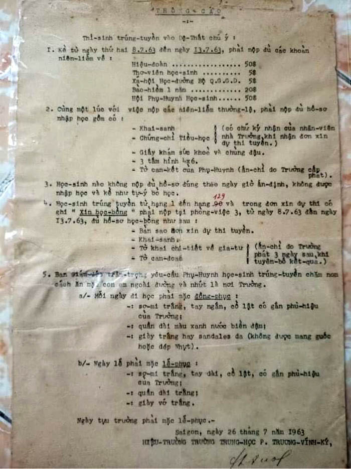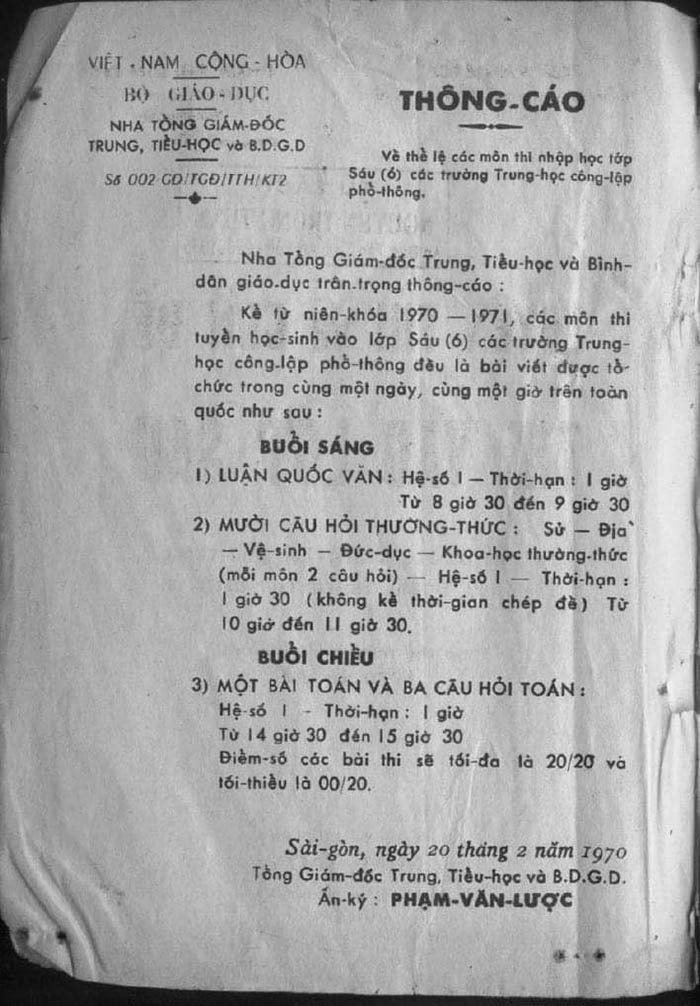 Thể lệ môn thi nhập học lớp 6 & Thông báo cho học sinh trúng tuyển đệ thất