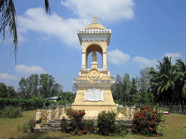 Tháp mộ Trần Bá Lộc nằm trong khu đất Thánh tại thị trấn Cái Bè