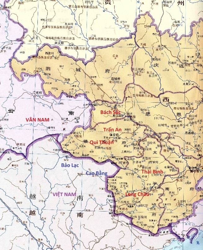 … Tiền tỉnh lại Sơn Tây của Việt Nam là Nguyễn Đình Nhuận, tỉnh lại của Lạng Sơn là Lã Xuân Uy (呂春葳), tỉnh lại Cao Bằng là Nghiêm Xuân Phương (嚴春芳) cúi bẩm lên viên môn tổng đốc Lưỡng Quảng thiên triều Trương đại nhân xem đến.