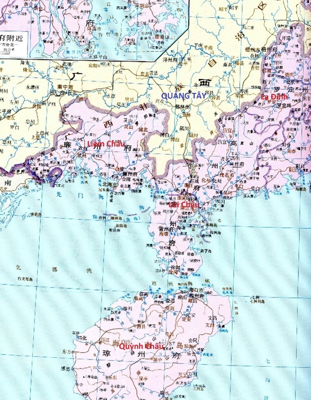 Có điều khuôn viên tỉnh lại gần kề với cửa biển nơi mà người Trung Hoa người Tây Dương lẫn lộn, ở tại trong vịnh thì sáng tối lúc nào cũng có kẻ ra người vào, rất là phồn tạp, việc phòng phạm khó khăn, không thể không sinh chuyện nên không thể để tại Khâm châu mà nơi khác cũng khó an tháp. Chỉ có ở địa phương La Định là nơi không có đường đi thông suốt, hẻo lánh xa xôi mà dân chúng cũng hiền lành nên đã sức cho hiệp phó tướng Quảng Châu phái binh dũng hộ tống các quan Việt Nam đến nơi đó sinh sống và ra lệnh cho văn võ phụ trách ở tỉnh thành ước thúc đề phòng, sai binh lính luân chuyển tuần phòng quan sát, không để cho họ giao thiệp với những người qua lại hay từ bên ngoài đến đây. Lại cũng cấm không cho tự ý rời khỏi châu thành để đến ở một nơi khác.