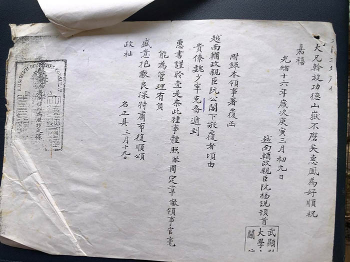 Chiếu lục công hàm của phụ chính thân thần Việt Nam là Nguyễn Phúc Thuyết gửi cho lãnh sự Đại Đức quốc.