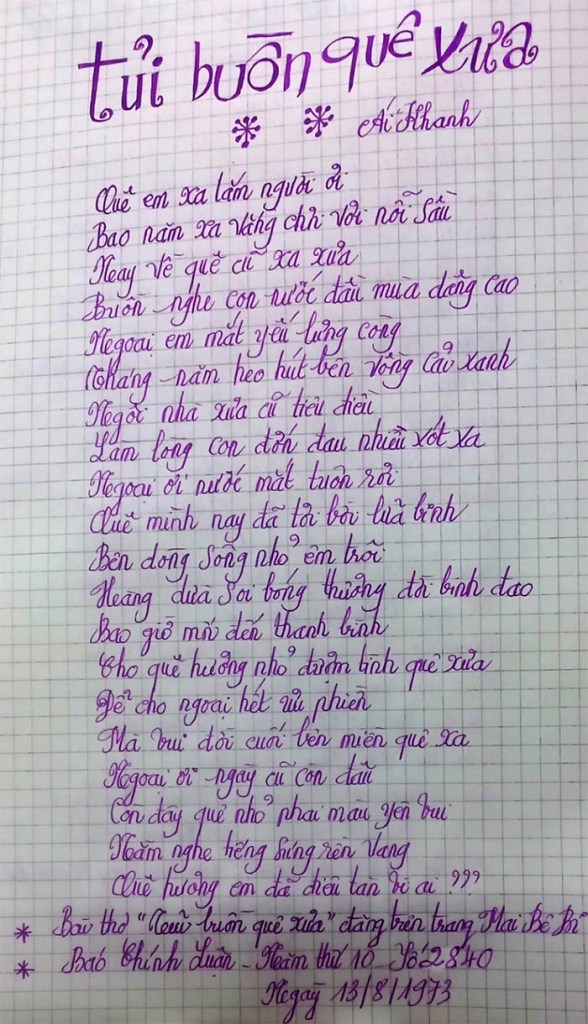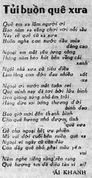 Bài thơ “Tủi buồn quê xưa” đăng trên trang Mai Bê Bi