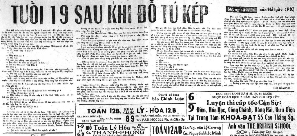 Trong lớp nầy tôi biết hai anh vừa đậu xong làm đơn xin du học gửi đăng báo lung tung với lý do tuổi 18 ưu hạng, chiến tranh đang hồi tàn lụi, kinh tế hậu chiến cần chuyên viên kỹ thuật v.v.