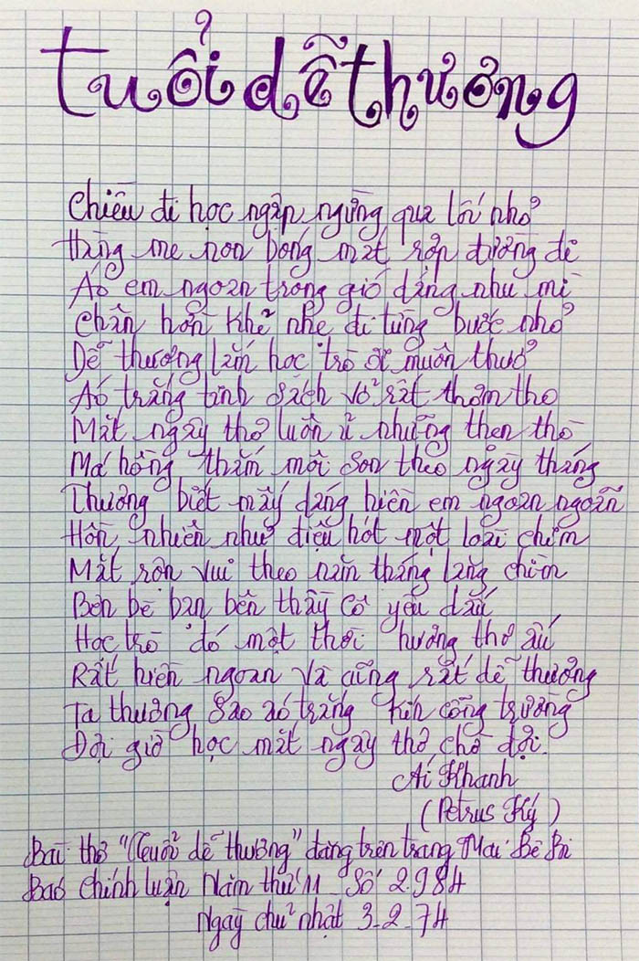 Xin cám ơn sư huynh Võ Phi Hùng Niên khóa 67-74 đã giúp tôi có được tư liệu nhật báo Chính Luận, nhờ đó tôi đã tìm lại được một số bài viết văn, thơ xin ghi chép lại để hoài niệm về tuổi hoa niên.