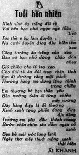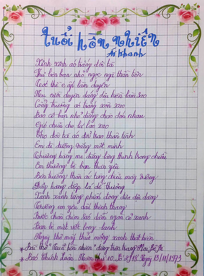 Bài thơ gốc Tuổi hồn nhiên đăng trên trang Mai Bê Bi