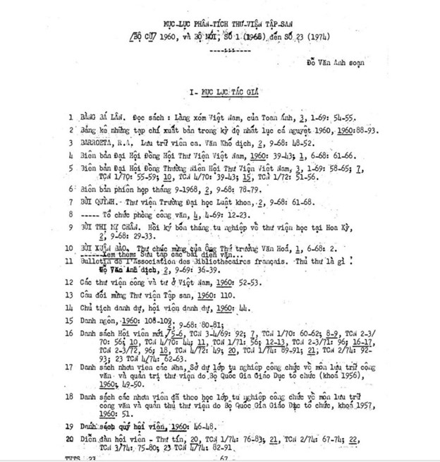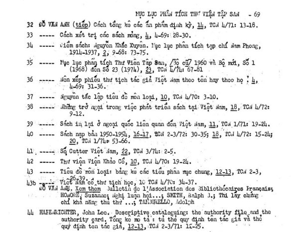 - Đỗ Văn Anh, “Thư-viện Viện Khảo Cổ,” đăng trong tạp chí Thư Viện Tập San, số 10, Đệ 4 TCN (1970), tr. 19-24.