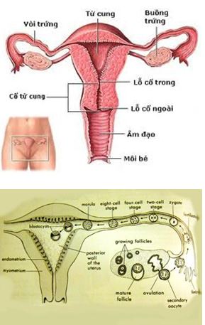 Trứng nẩy nở và phối ngẩu thành phôi thai di chuyển trong tay vòi vào tử cung