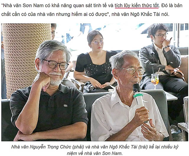 Tay kia lại nói: “Nhà văn Sơn Nam có khả năng quan sát tinh tế và tích lũy kiến thức tốt.”