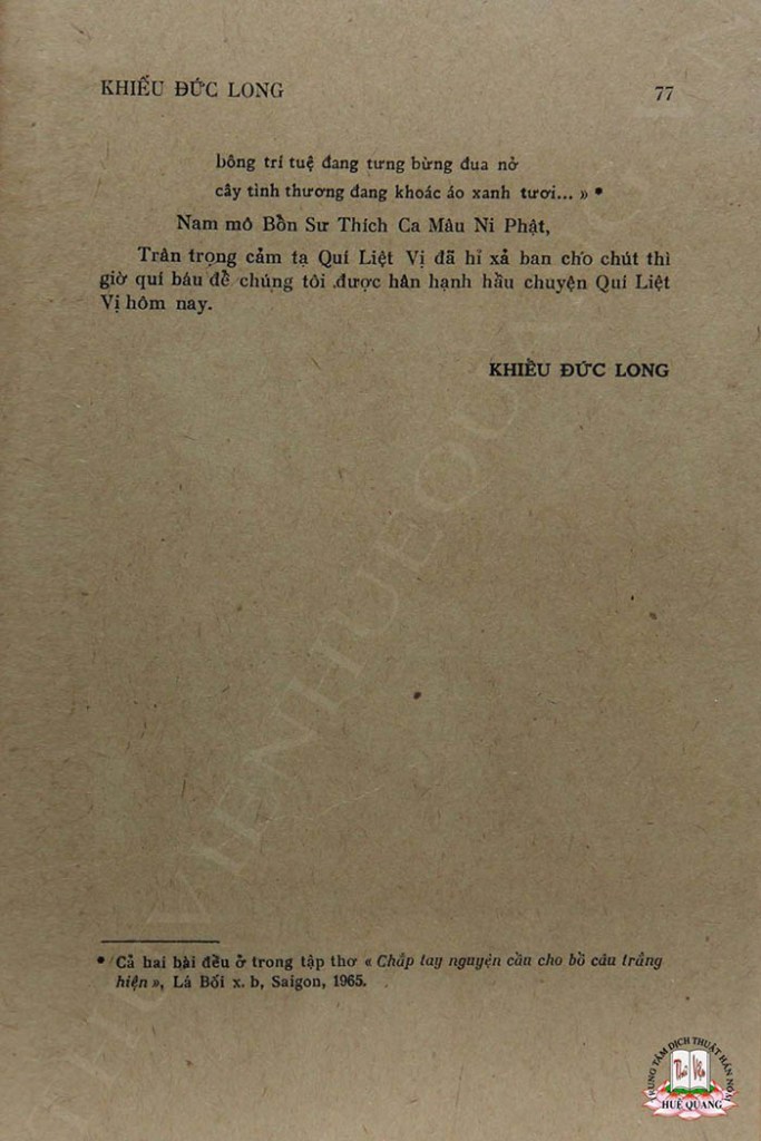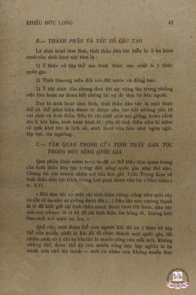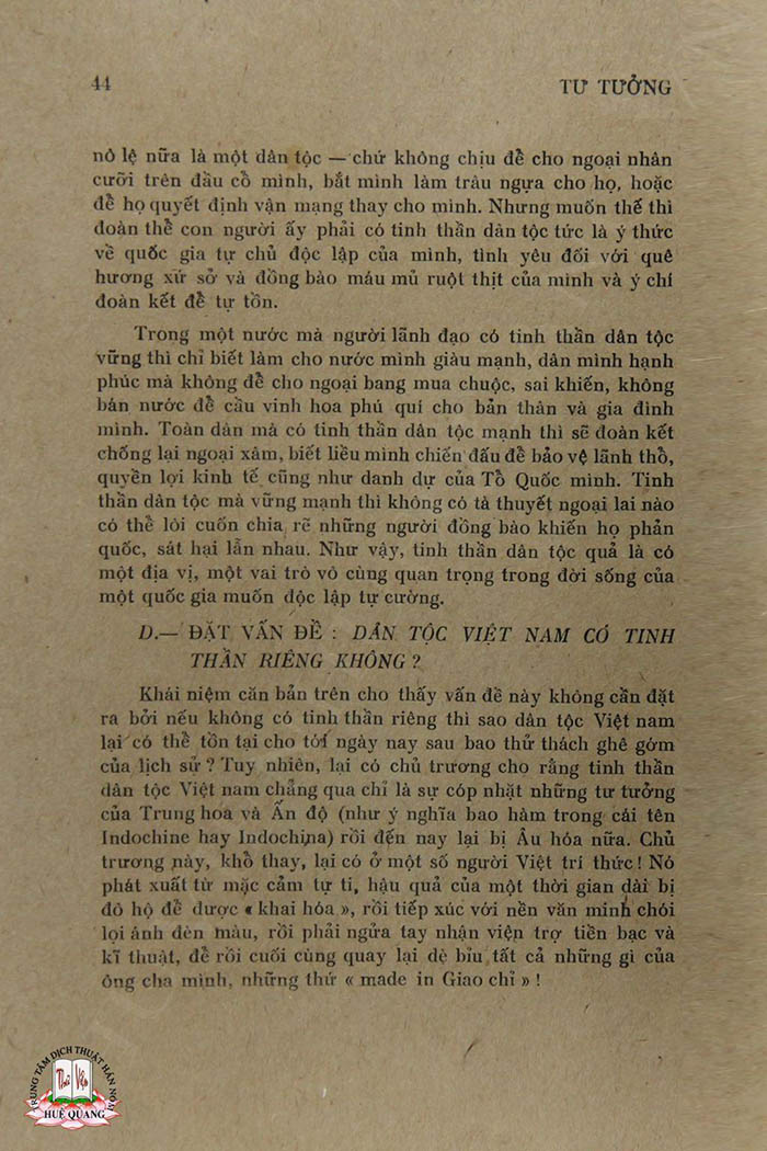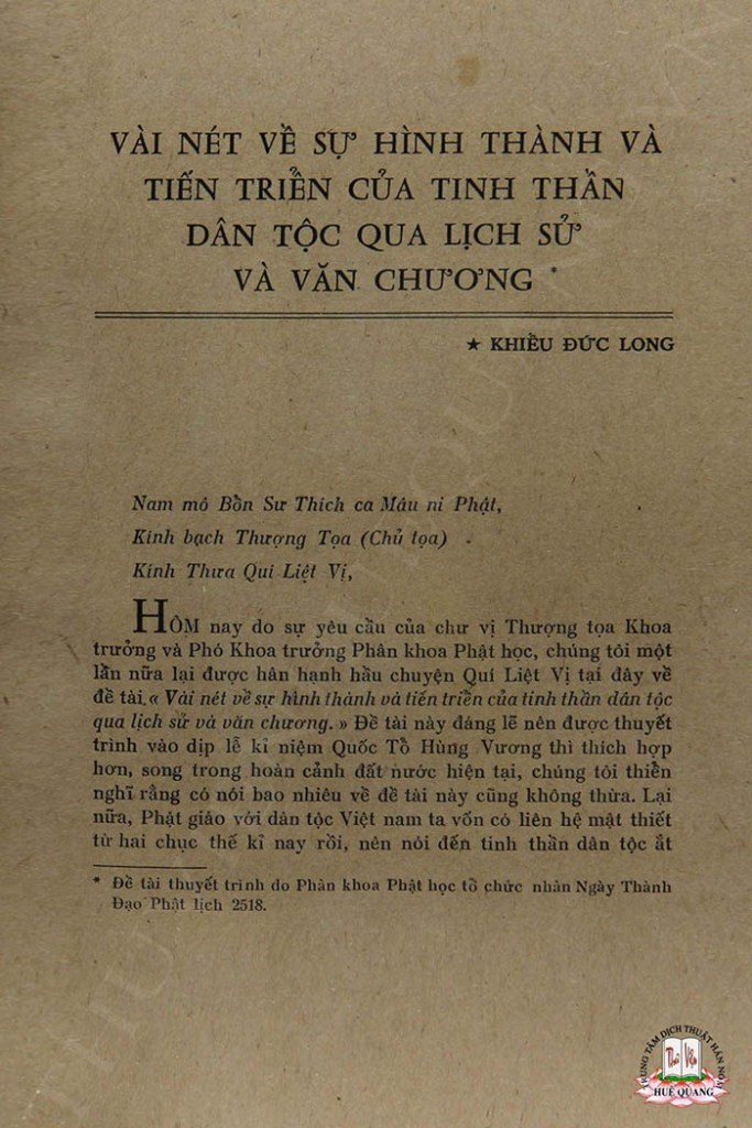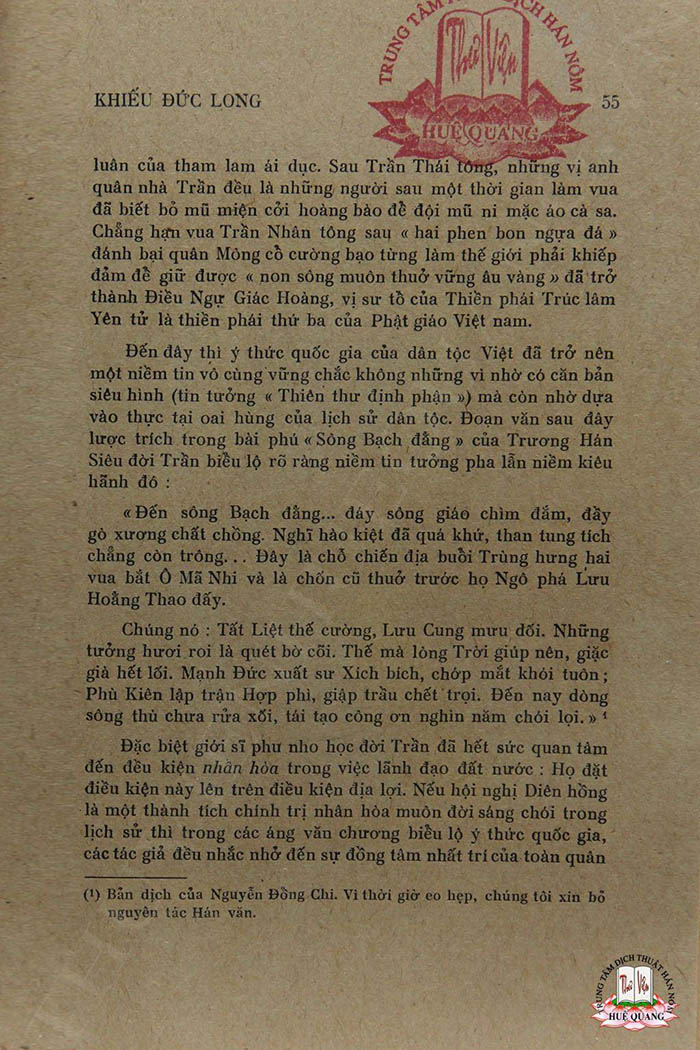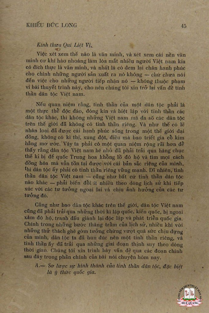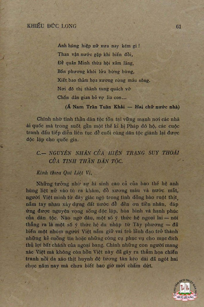 Vài nét về sự hình thành và tiến triển của tinh thần dân tộc qua lịch sử và văn chương GS Khiếu Đức Long (Nguồn: Trích từ Tạp chí Tư Tưởng số 03, 02-1975, và được Thư viện Huệ Quang chuyển sang PDF) Share this: Share on X (Opens in new window) X Share on Facebook (Opens in new window) Facebook Like Loading...