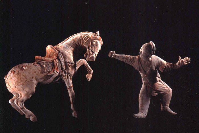 Người Tây Vực huấn luyện ngựa (đất nung đời Đường)