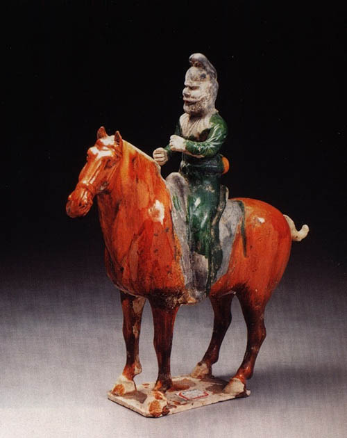Cưỡi ngựa đời Đường (gốm sứ ba màu)