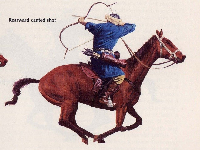 Tuy nhiên, chỉ khi người du mục ở Trung Á biết kết hợp sức mạnh và lợi điểm của cây cung liên hợp (composite bow) với sức di động (mobility) của giống ngựa vùng mạc bắc, họ mới tạo thành được sức mạnh khủng khiếp để trở thành một đế quốc hùng mạnh vào thế kỷ XIII, XIV. Ðế quốc đó như một vết dầu loang, lan rộng sang khắp vùng Tây Á, tiêu diệt những quốc gia hết sức bạo tợn và dũng mãnh trong thế giới Hồi giáo và Thiên Chúa giáo rồi theo đà tràn xuống miền nam chiếm lĩnh cả một khu vực văn minh bậc nhất thế giới là nước Trung Hoa.