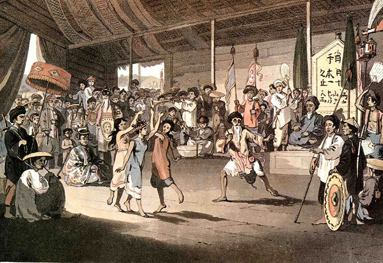 Hình 8: Hát tuồng ở Ðàng Trong (W. Alexander 1793)/John Barrow, A Voyage to Cochinchina (1806) tr. 296-97