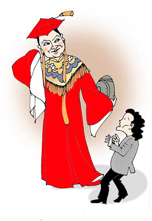 – Bạch Tuyết có biết rằng mọi người đều biết trên thế giới có nhiều bằng tiến sĩ danh dự được cấp do sự giới thiệu hay quen biết. Có các trường đại học dỏm, không được chấp nhận, chỉ cần nộp cho họ vài ngàn dollars là có bằng tiến sĩ giấy?