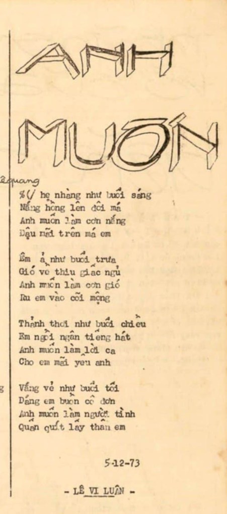 Anh muốn Lê Vi Luân Share this: Click to share on X (Opens in new window) X Click to share on Facebook (Opens in new window) Facebook Like Loading...