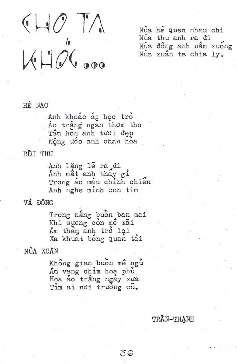 Cho ta khóc … Trần Thạnh Share this: Click to share on X (Opens in new window) X Click to share on Facebook (Opens in new window) Facebook Like Loading...